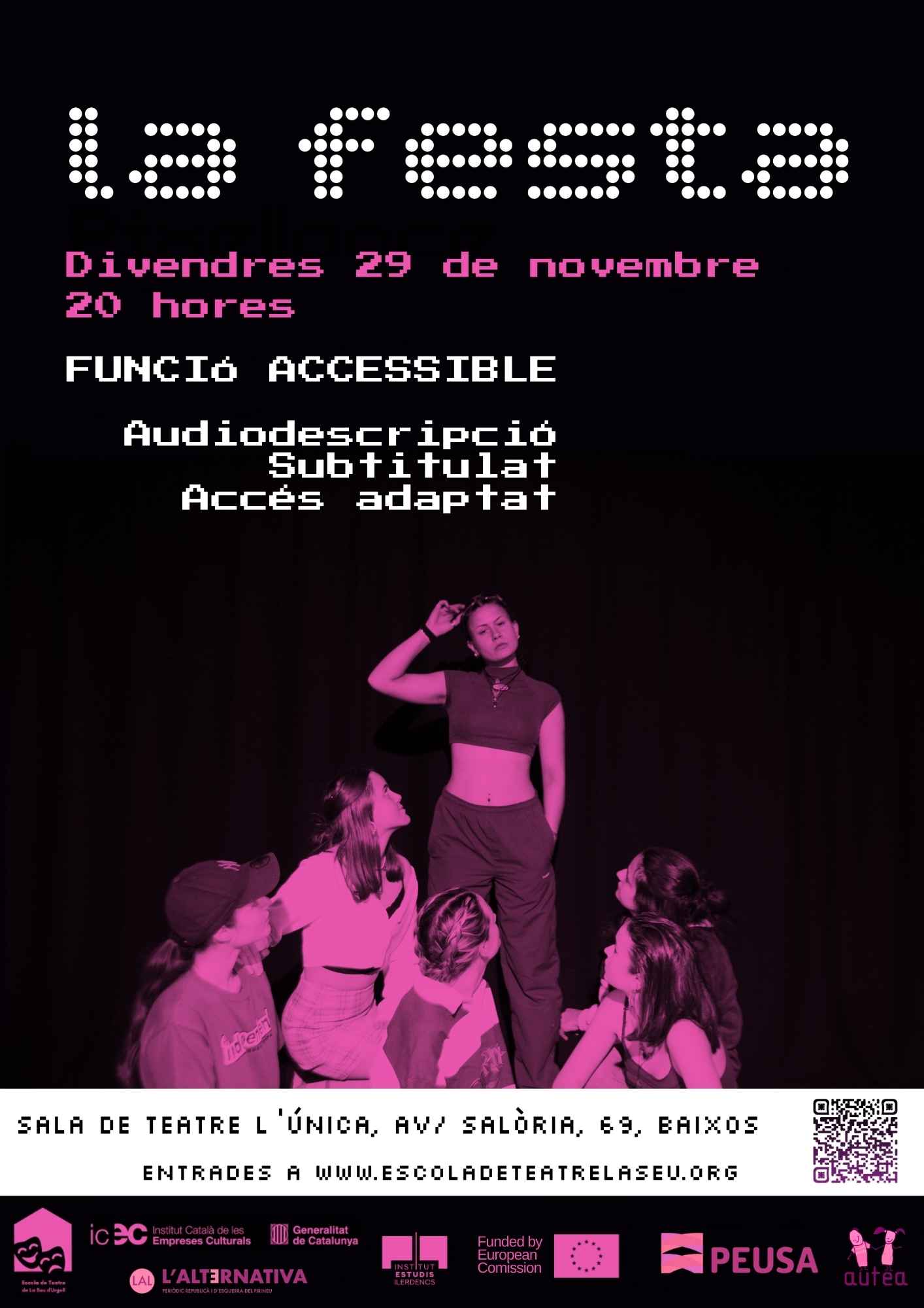 Lo que también tenemos muy claro es que, a pesar de todas las actrices y personal involucrado son amateurs, (algunas de ellas están en proceso de profesionalización), queríamos págales estos “bolos” extra. En este sentido, PEUSA ha podido financiar el sueldo de las actrices que representan este espectáculo. Creo que, de esto va un poco hacer comunidad: una persona tiene una idea, nosotros tenemos la capacidad de organizarla, otras tienen la capacidad de poner el dinero… Y de este modo se hace comunidad, se hace red, y se crea un mundo más justo, más equitativo y más inclusivo con todo el mundo.